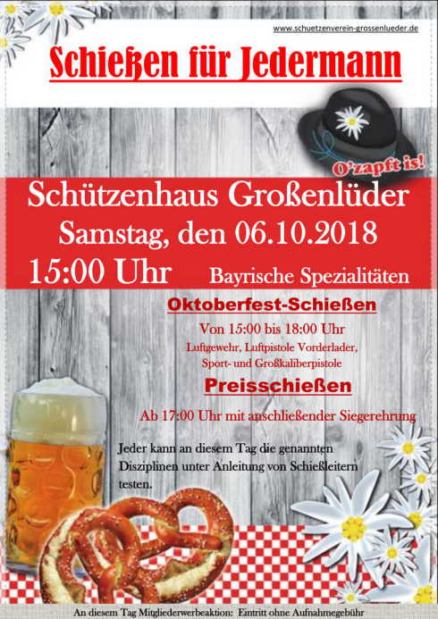Pro Mannschaft beträgt das Startgeld 12 Euro. Die Schießzeiten sind zwischen 15 und 18 Uhr.