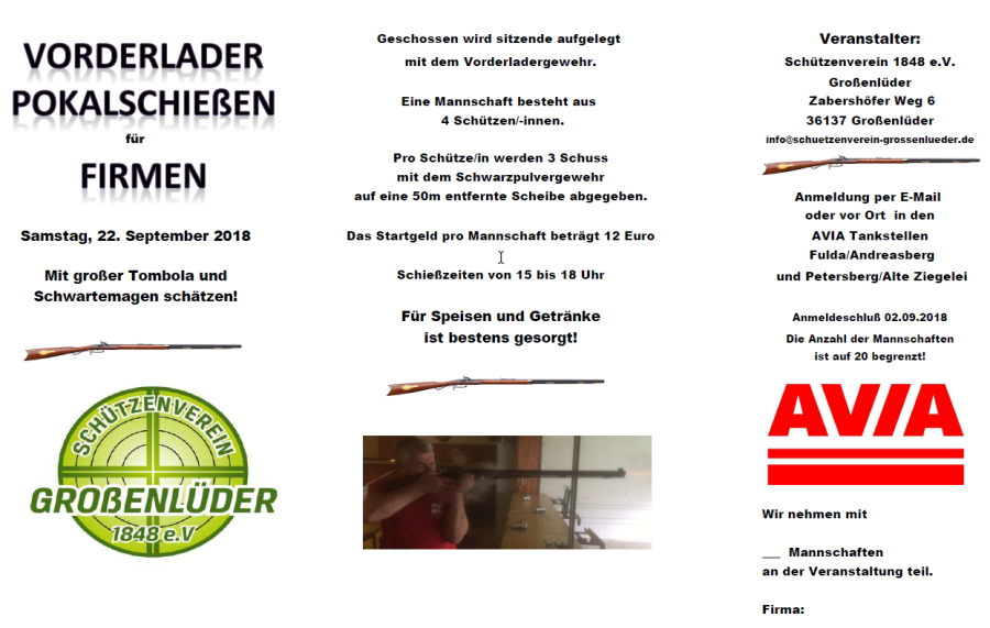 Anmeldeformular für das Vorderlader Firmenpokalschießen am 22.09.2018: